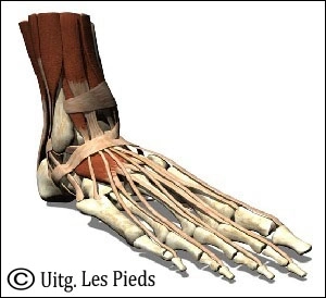 Om in staat te zijn het hele lichaam te dragen moeten de voeten een stevige struktuur hebben. Elke voet heeft 26 beenderen, en dat aantal op zich garandeert weinig stevigheid. De vereiste stevigheid en kracht worden verzorgd door de bindweefselbanden die opgebouwd zijn uit sterke collagene vezels. Deze banden, ligamenten genaamd, verbinden de voetwortel met het onderbeen, de voetwortelbeenderen onderling, de middenvoet met de voetwortel en de middenvoetsbeenderen onderling.
