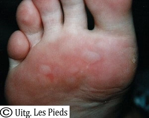 Een blaar is een holte in of onder de opperhuid die gevuld is met vocht. Een bekende oorzaak is druk of wrijving van te nauwe schoenen.