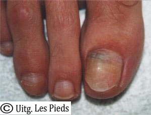 Dit is een woekering van het bot van het teenkootje onder de nagel. De oorzaak kan een trauma zijn (letsel door een ongeluk). Soms echter kan een likdoorn op het beenvlies van het teenkootje drukken, waardoor dit wordt geïrriteerd en er een woekering ontstaat. De woekering kan de nagel omhoog drukken, wat gepaard kan gaan met veel pijn.