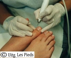 Probeer nooit zelf het stukje er uit te trekken. Hiermee beschadig je de wortel van de nagel en wordt het probleem alleen maar erger. Een voetverzorger daarentegen kan, afhankelijk van de oorzaak, wel iets doen. Ten eerste, bij een aangeboren oorzaak, het puntje zo kort mogelijk affrezen. Ten tweede, als dit mogelijk is door middel van hars het stukje nagel aan de nagel vastzetten zodat het dwangstukje mee gaat groeien en het op den duur weer een complete nagel is. Dit lukt niet altijd. Wilt u echt permanent van dit probleem af, dan kan alleen een chirurg dit verwijderen.