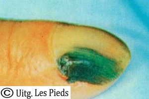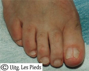 Nagelproblemen bij de grote teen aan de middenvoetkant: de nagelhoek scheurt in of breekt af; de nagel groeit in; er ontstaat eeltgroei in de nagelwal.