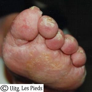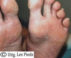 Er ontstaat een weke likdoorn tussen de vierde en vijfde teen.