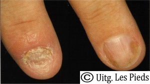 Psoriasis is een aangeboren, chronische, en niet-besmettelijke huidziekte. Kenmerkend zijn schilferende droge plekken op de huid. Ook de nagels kunnen aangetast zijn en vertonen dan putjes en groeven. Ook treedt verkleuring op. Men noemt de psoriasisnagel ook wel vingerhoednagel. Psoriasisnagels kunnen veel op schimmelnagels lijken. Daarom is het van groot belang dat de huisarts eerst onderzoek verricht alvorens eventueel antischimmel-medicijnen voor te schrijven.