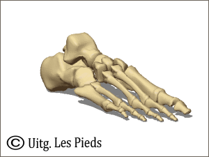 De voet bestaat uit de voetwortel, de middenvoet en de tenen. De voetwortel bestaat uit zeven beenderen: het sprongbeen of kootbeen, het hielbeen, het scheepvormig been, het teerlingbeen en de drie wigvormige beenderen. Het sprongbeen rust op het hielbeen en vormt samen met het scheenbeen en kuitbeen het enkelgewricht. Het hielbeen is het grootste voetwortelbeen. Het bevindt zich onder het sprongbeen en rust op de grond. De middenvoet bestaat uit vijf middenvoetsbeenderen. De tenen bestaan uit drie kootjes, behalve de grote teen die er twee heeft.