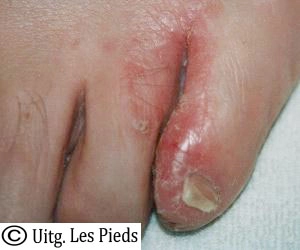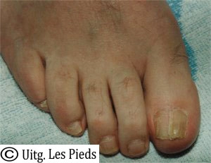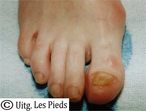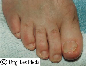 Nagelproblemen bij de grote teen aan de middenvoetkant: de nagelhoek scheurt in of breekt af; de nagel groeit in; er ontstaat eeltgroei in de nagelwal.