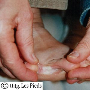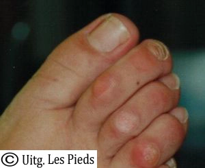Er ontstaat een weke likdoorn tussen de vierde en vijfde teen.